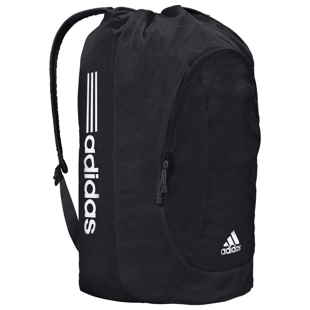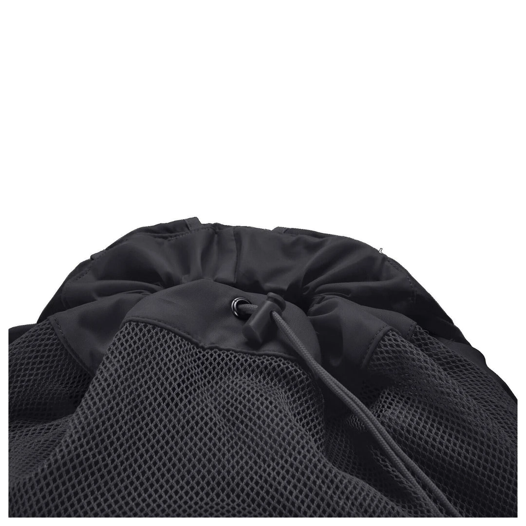 keeps your gear ventilated. A drawstring closure and zippered front
