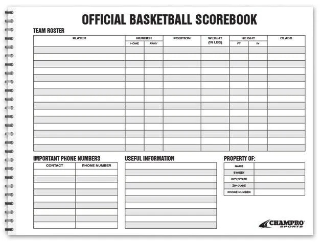 Champro Basketball Scorebook – 30 Games Score Book Scoring Game Statistics Stats