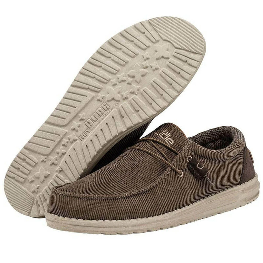 Hey Dude Wally Corduroy Walnut Men’s Shoes Comfortable Lightweight Slip On Shoe Hey Dude Shoes