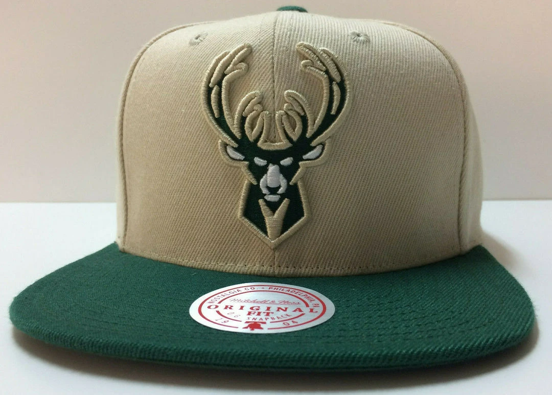 Milwaukee Bucks Mitchell & Ness NBA Snapback Hat 2Tone Flat Brim Adjustable Cap