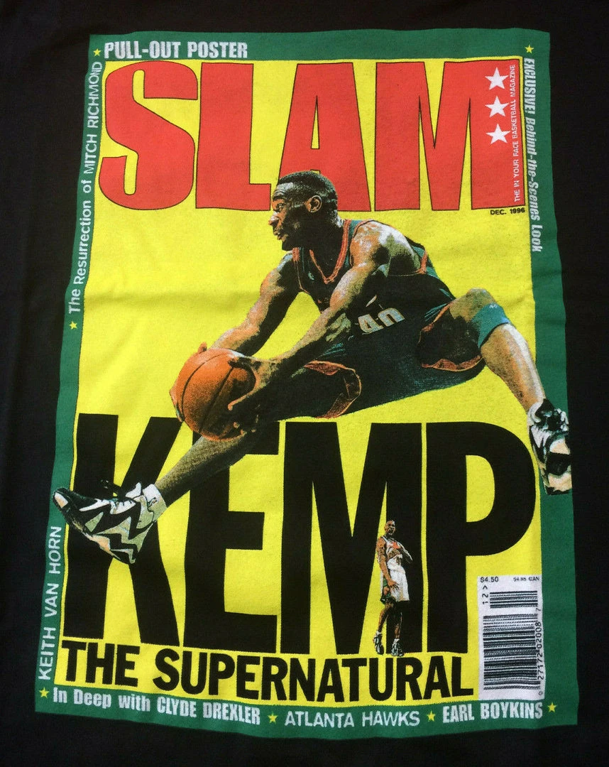 *Screen Printed SLAM Magazine Shawn Kemp Seattle SuperSonics Logo On Front