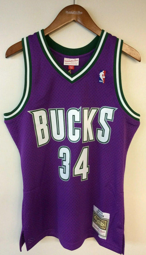 Ray Allen Milwaukee Bucks Mitchell & Ness NBA Authentic Jersey 2000-2001 Purple